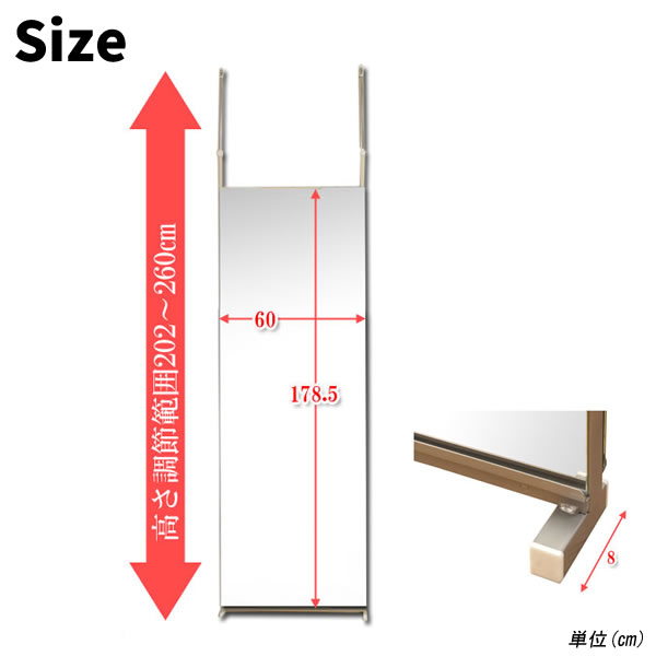 突っ張りパーテーション 両面ミラー 幅60cm 天井つっぱり式 鏡 姿見 ミラー 姿見 全身鏡 スタンドミラー 日本製の詳細情報 商品の仕様・スペック ■商品について お部屋にちょっとしたアクセント「間仕切りシリーズ」にミラータイプが登場!お部屋を仕切るだけでなくミラーとして両サイドから使える優れもの ■商品の仕様 材質/スチール(エポキシ樹脂粉体塗装)ミラー 組立品 日本製 ■商品サイズ 本体:(約)幅60×奥行8×高さ202〜260cm、ミラー部:(約)幅60×高さ178.5cm お届け・納期について 通常、商品の在庫がある場合は10日前後でお届け可能です。