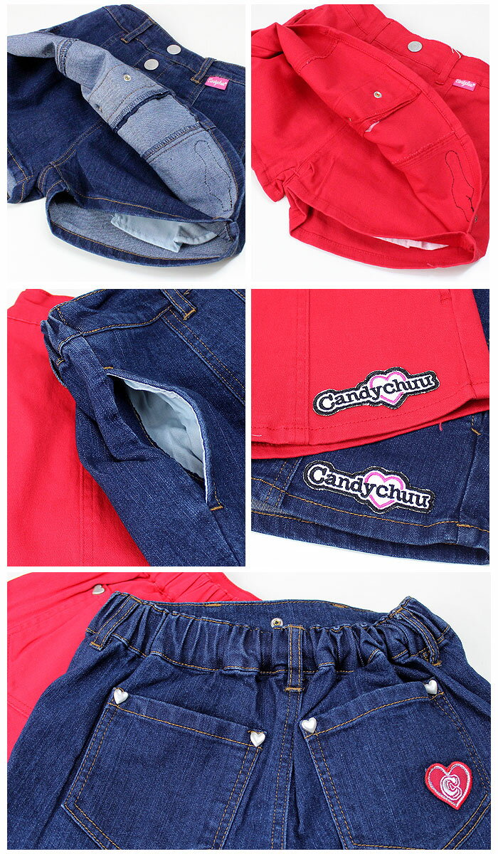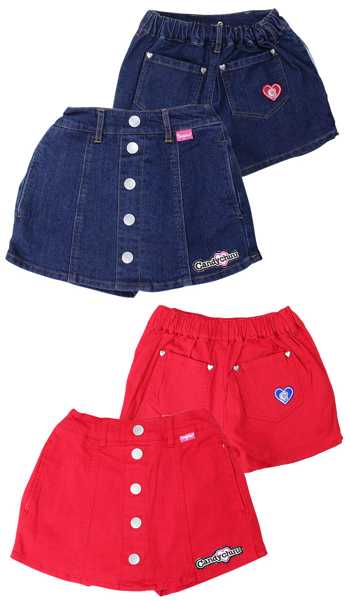 ITEM DATA 前からみるとミニスカート、でも実はショートパンツ、 飾りボタンがアクセントになったシンプルデザイン、 ウエストは腰部分がゴムになった仕様です。