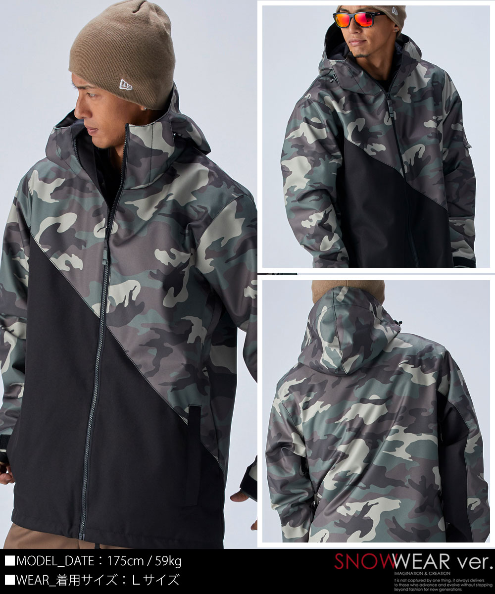ハードな動きにスムーズに対応 動きやすさを追求したラフシルエット 素材:表地ポリエステル:100% 裏地ポリエステル:100% ※その他(トリコット+トリコット裏起毛) 耐水圧:13,000mm(検査済) 透湿度:1,080g/m2/24h 撥水度:最高等級5級 (※撥水度採点100点/超撥水コーティング加工) テフロン加工(汚れ防止機能) TPU裏地加工 上下共にベンチレーション装備 (※滑走時に暑い時はベンチレーション開けることでシチュエーションに応じた体温調節が可能。