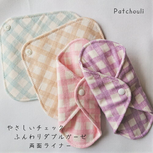 【在庫限り】やさしいチェックふんわりダブルガーゼ両面ライナー(おりものシート)1枚 布ナプキン パンティライナー 生理 温活 妊活 冷え取り 冷え性 敏感肌 可愛い Patchouli パチュリー おまたカイロ