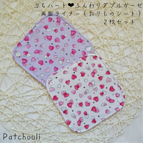 ぷちハート ふんわりダブルガーゼ両面ライナー(おりものシート)2枚セット 布ナプキン パンティライナー 生理 温活 妊活 冷え取り 冷え性 敏感肌 Patchouli パチュリー 可愛い おまたカイロ 思春期 送料無料